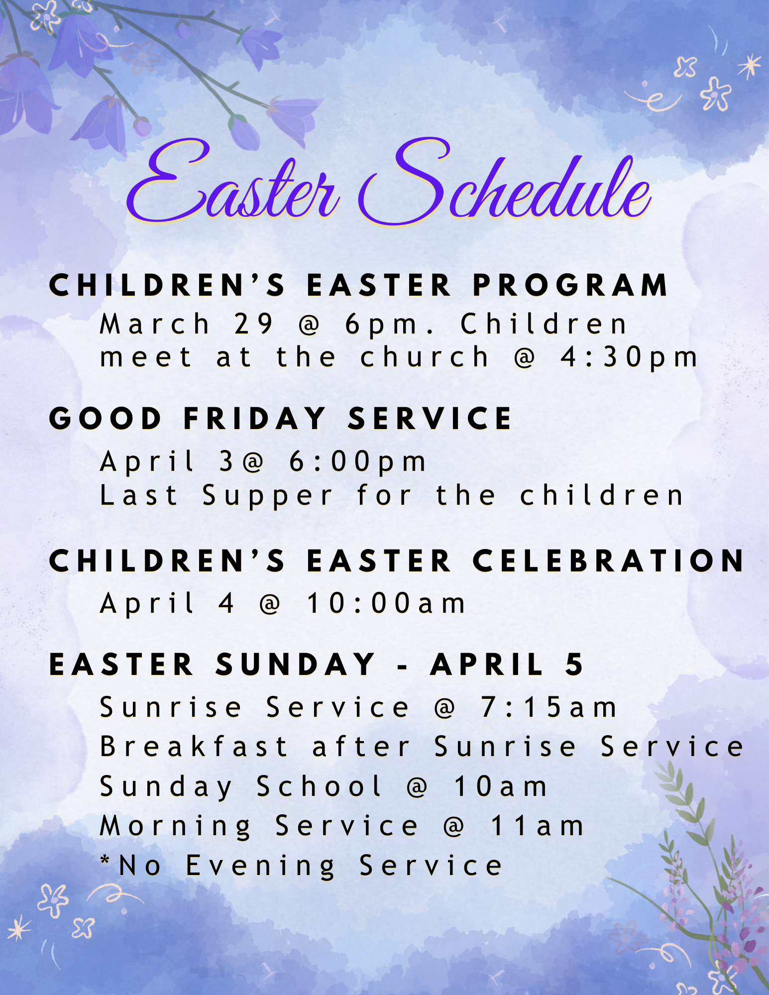 Easter Schedule